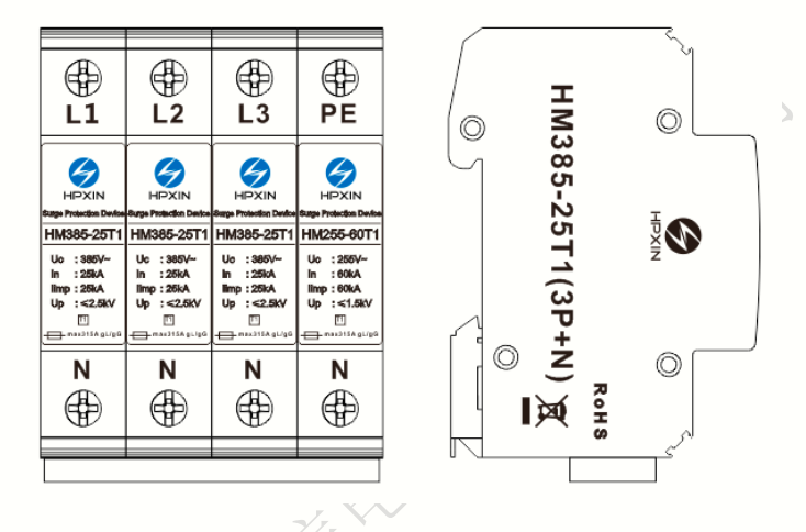 | Nominal discharge current-In(8/20μs) | 25kA(L-N);60kA(N-PE) |
